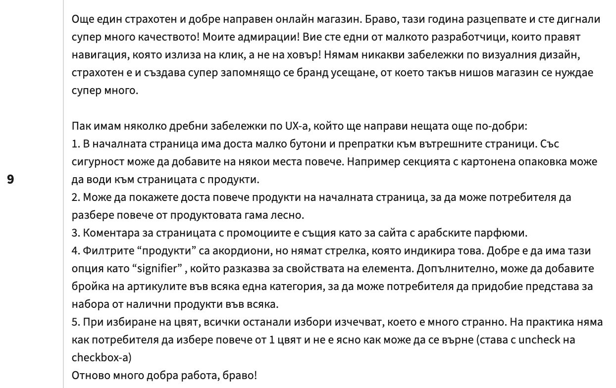 Прилагаме още коментари, защото обратната връзка е най-ценното, което участниците получават от журито, а тя е доста задълбочена, полезна и конструктивна.